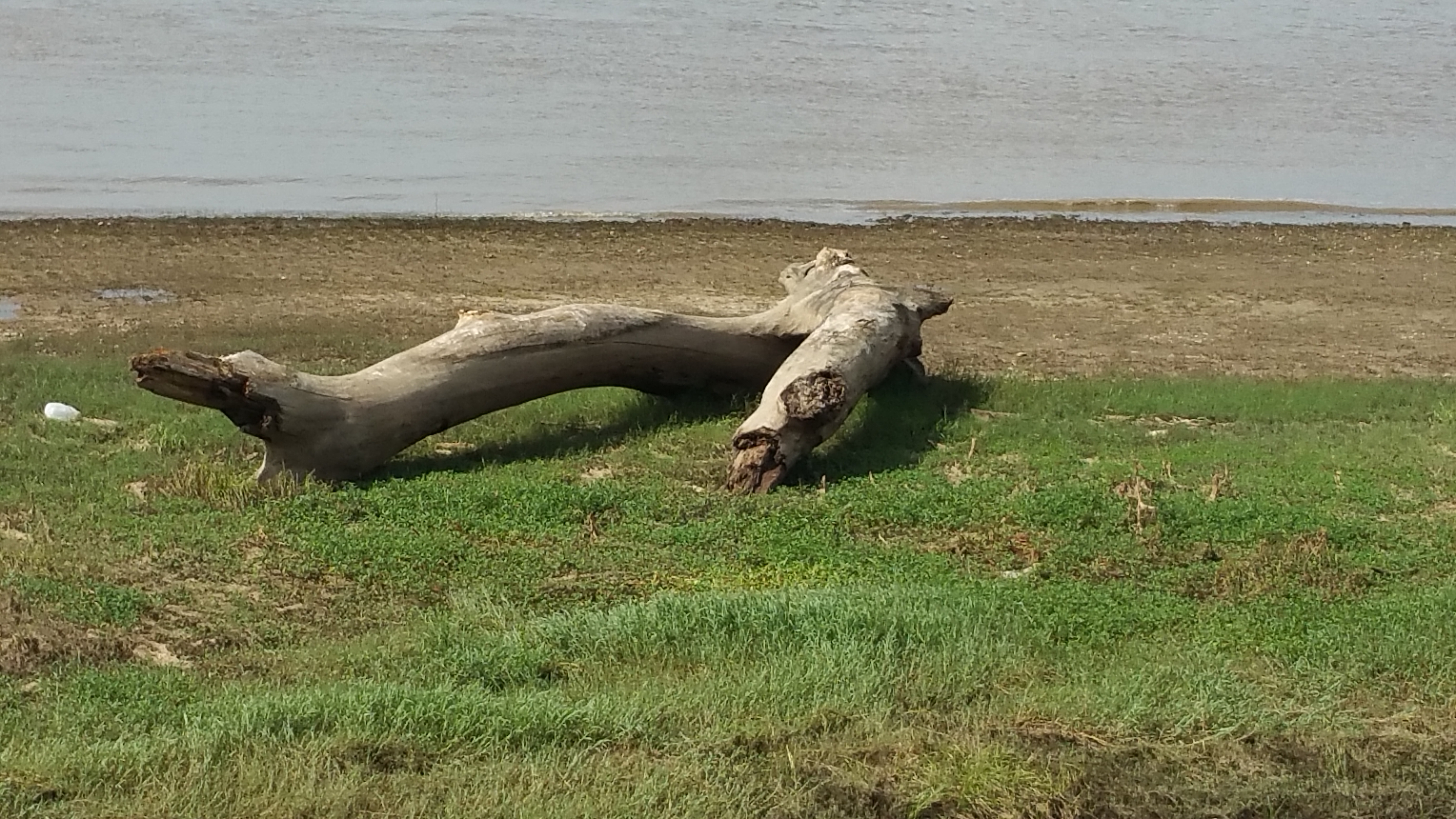 A very large piece of driftwood sits beached on the Mississippi River batture at Algiers Point, LA. A batture (pronounced "batcher") is a strip of land that is dry when a river is low and submerged when a river floods. This driftwood was left behind by floodwater in 2015. A few months prior to this photograph's date, the entire area was submerged under several feet of water, including the spot I was standing when I took the photo. The river floods annually.