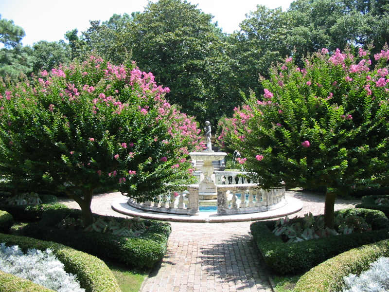 A fountain at the Elizabethan Gardens in Manteo, NC